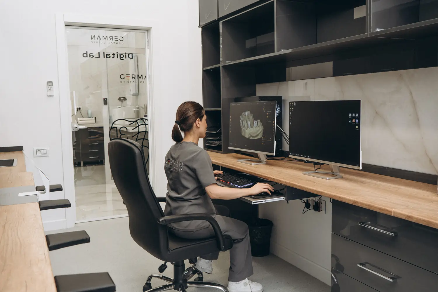 German Dental Clinic-in daxilində yerləşən rəqəmsal dental laboratoriyamız sayəsində siz uzun müddət gözləmədən yüksək keyfiyyətli diş bərpaları əldə edirsiniz.